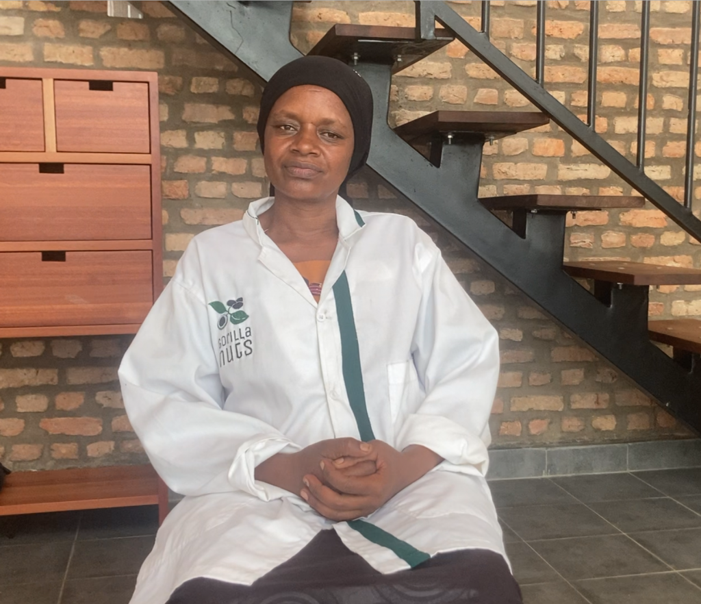 Jeanine says, “With the money I earn from Gorilla Nuts, I can take care of my family. I can pay my sons’ school fees and provide them with proper nutrition. Additionally, I am able to employ my neighbors to work in my family’s fields, which has increased my yields and contributed to the ongoing development of my family. Above all, what I appreciate most about Gorilla Nuts is the working environment. It is meaningful to work alongside my peers, feeling valued and supported without any pressure. What I receive in return is far more than I could have ever expected.”
